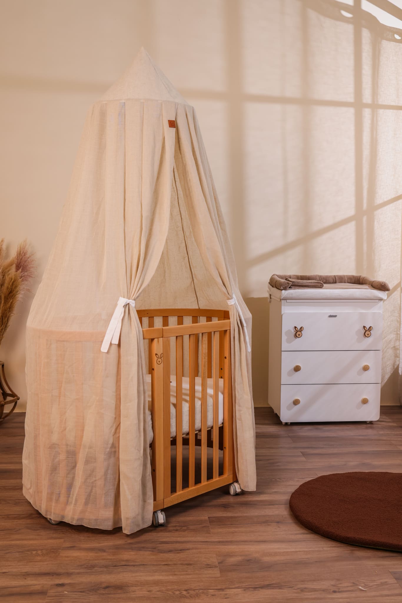 Baldacchino in tessuto nature, il tocco “savana” che cerchi per una cameretta unica nel suo genere.