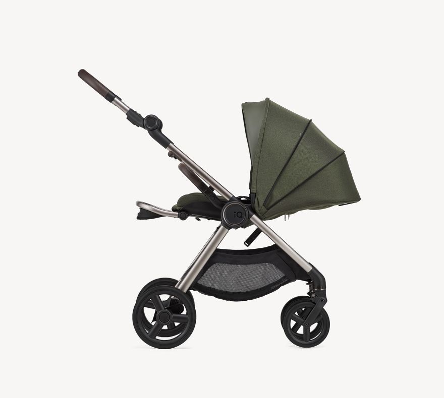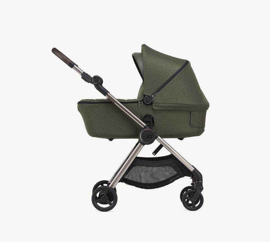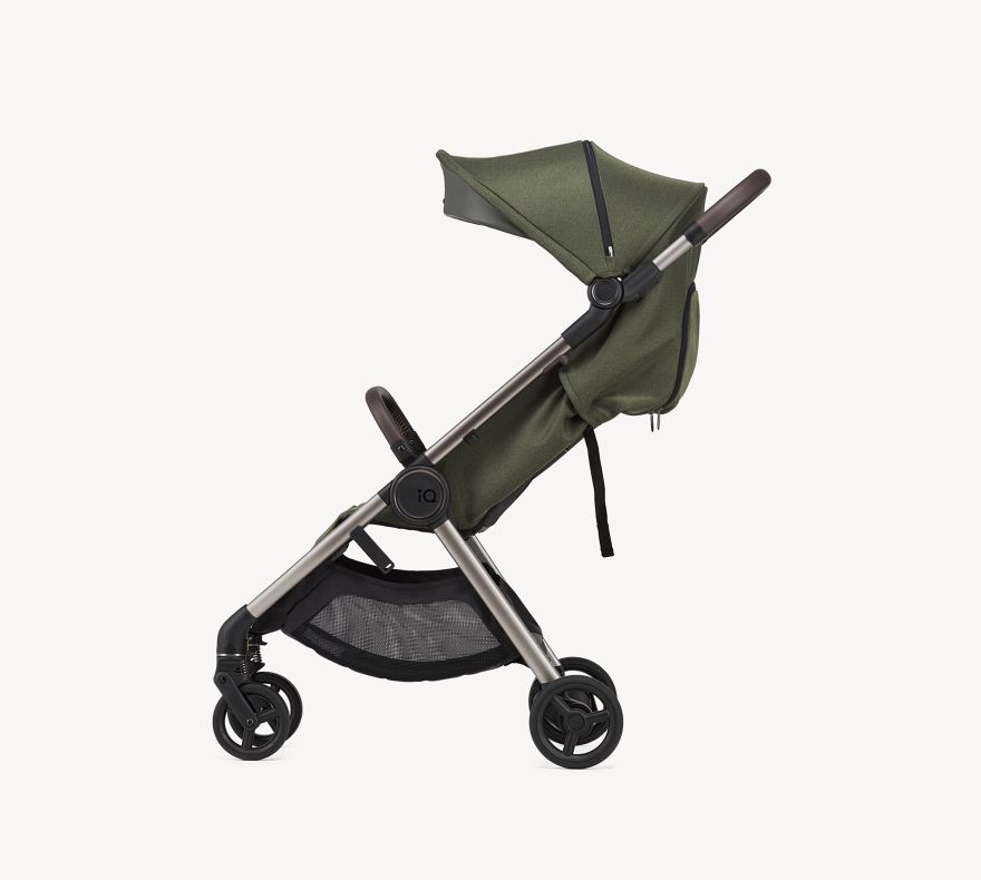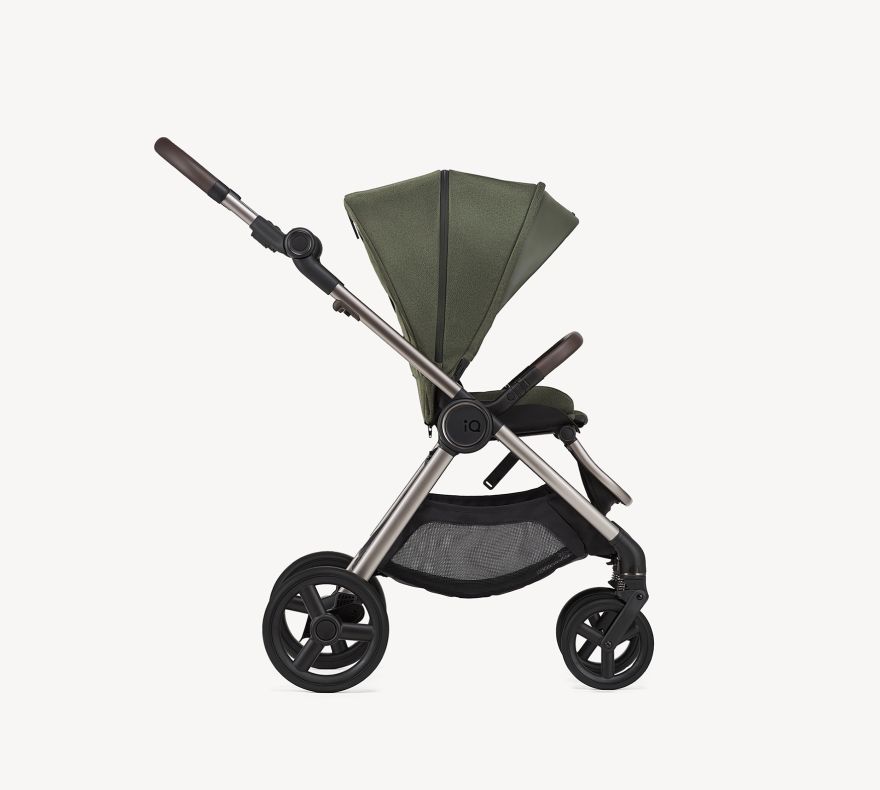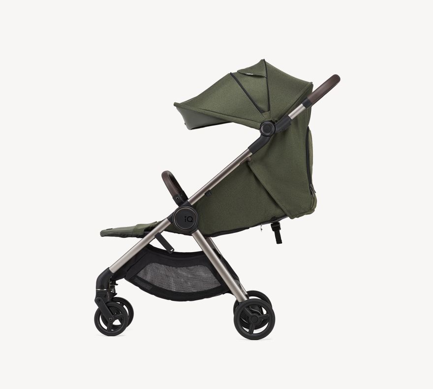 L'IQ è una navicella, un passeggino reversibile e un passeggino buggy da viaggio, tutto in uno. Leggero in ogni configurazione, permette di cambiare, abbinare e trasformarsi per adattarsi alle vostre esigenze. L'IQ è dotato di 2 set di ruote (più piccole e più grandi), che consentono di collegare uno dei due set per ottenere varie trasformazioni del passeggino.