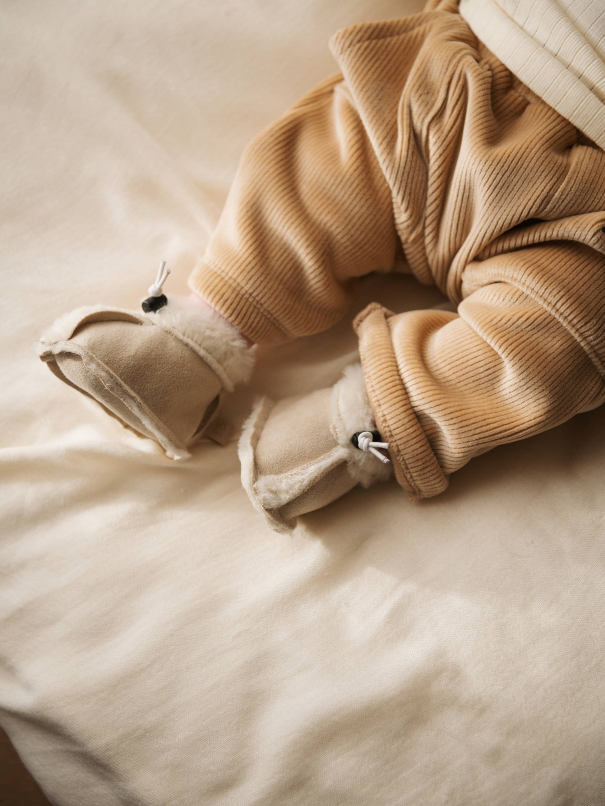 Le babbucce con chiusura a cordino sono pensate per offrire comfort e protezione ai piedini dei più piccoli, mantenendoli ben coperti e al caldo durante le giornate più fredde. Grazie al pratico sistema con coulisse, restano saldamente ai piedi senza stringere, accompagnando ogni movimento in totale libertà.