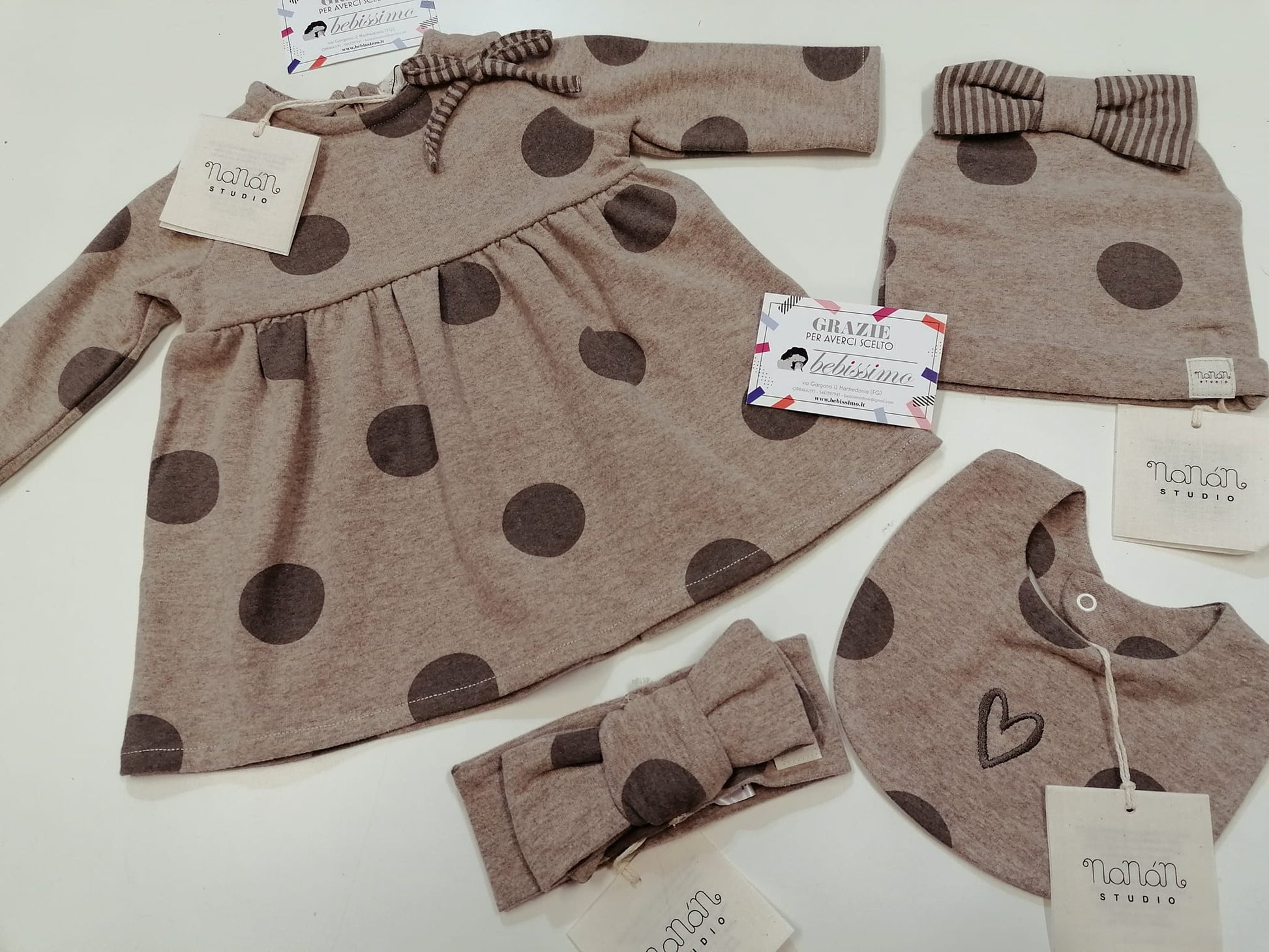 Nanan Studio - Berretta Tortora a Pois con Fiocco - SA0441T - 1m