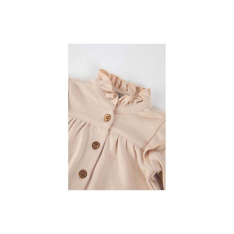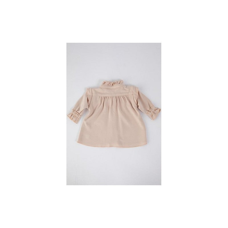 Camicetta in caldo tessuto di bambù organico per bimba, con colletto e maniche volant. Apertura sul davanti con bottoncini in legno. Elegante, pratica e comoda! Ideale per mantenere la tua piccola al caldo durante l'inverno, e coccolata tra la morbidezza del tessuto in bambù organico.