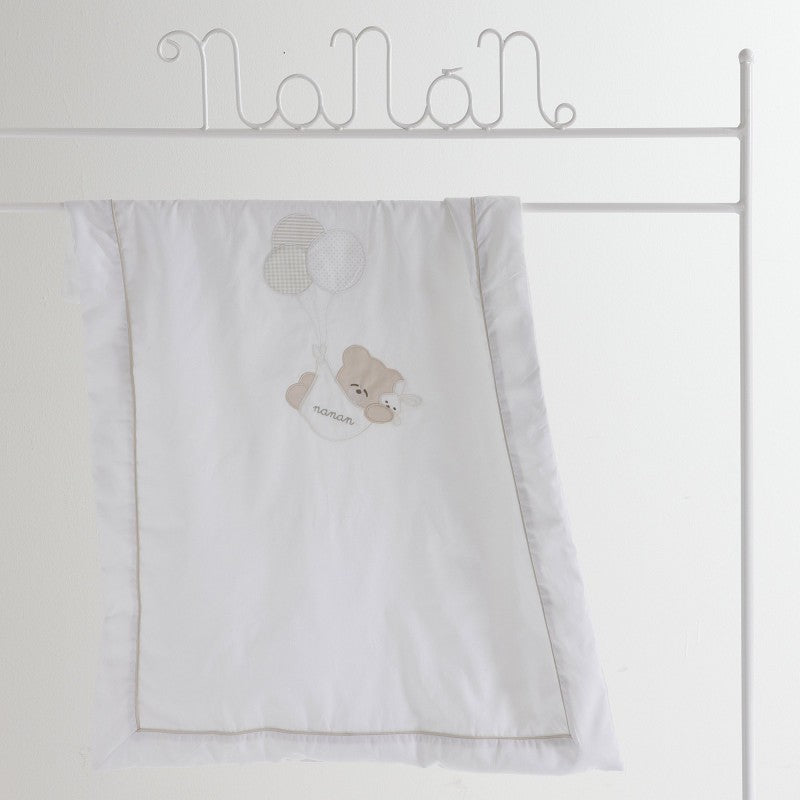 Aggiungi un tocco di stile al passeggino / carrozzina del tuo bebè con la copertina Nanàn bianco della collezione Palloncino! Realizzata in morbido jersey di cotone, mantiene al sicuro il tuo bebè. Perfetta per un sonno sicuro e confortevole grazie all'adorabile orsetto ricamato e ai palloncini sospesi.