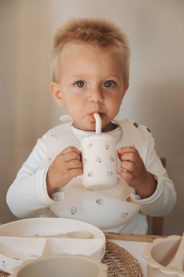 Sciacqua il set pappa con acqua tiepida e sapone neutro, oppure lavalo in lavastoviglie. Evita detergenti abrasivi e asciugalo accuratamente prima di riporlo.