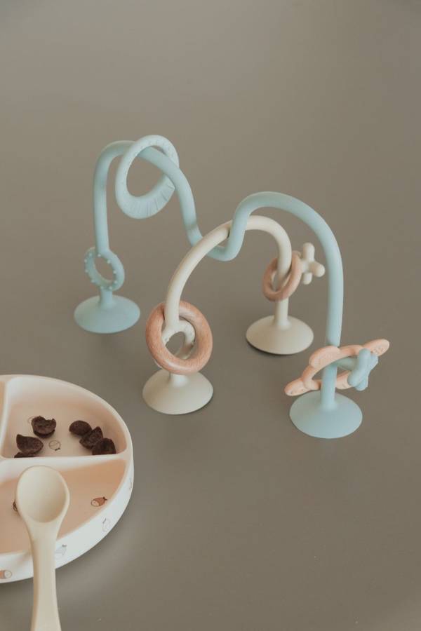 - Base con ventosa stabile: Si attacca facilmente al vassoio del seggiolone, evitando cadute e garantendo ore di gioco sicuro.