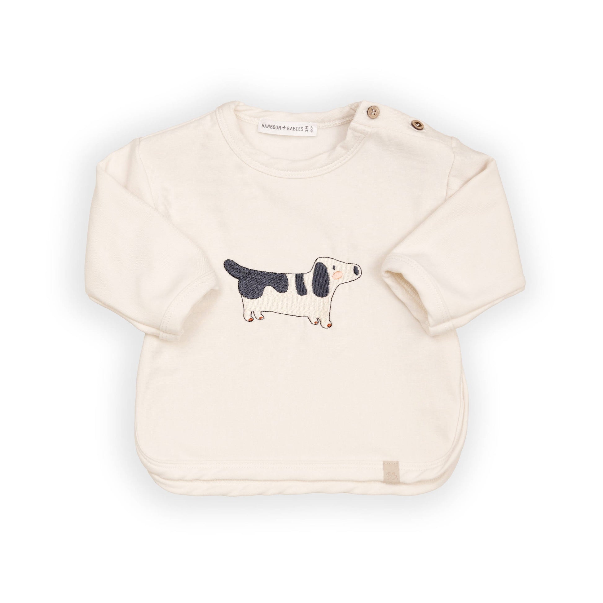 La maglia Bassotto è un capo divertente e pratico pensato per i più piccoli. Il simpatico ricamo frontale a forma di cagnolino aggiunge un tocco giocoso all’outfit quotidiano, rendendola ideale per l’asilo, il tempo libero o una passeggiata con mamma e papà.