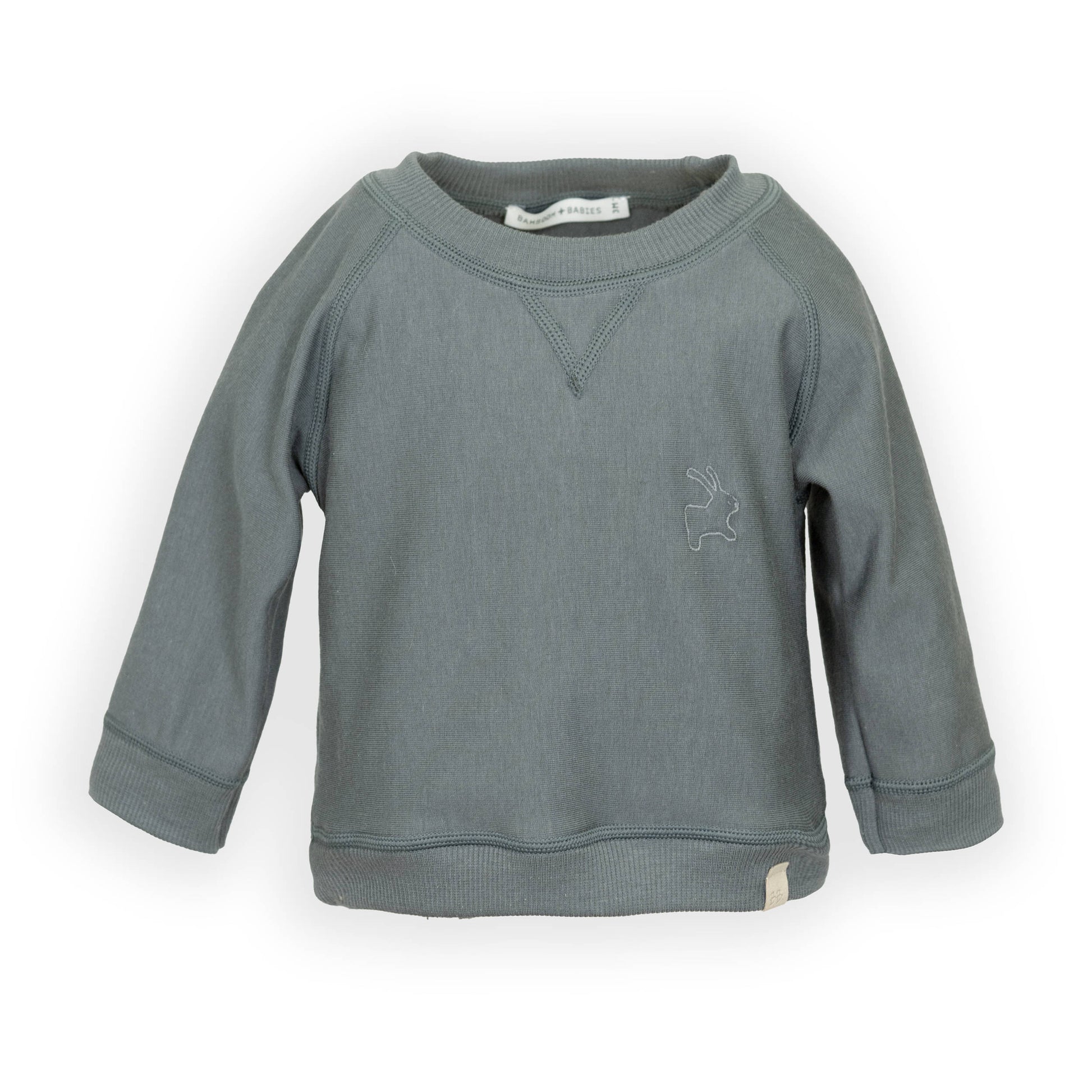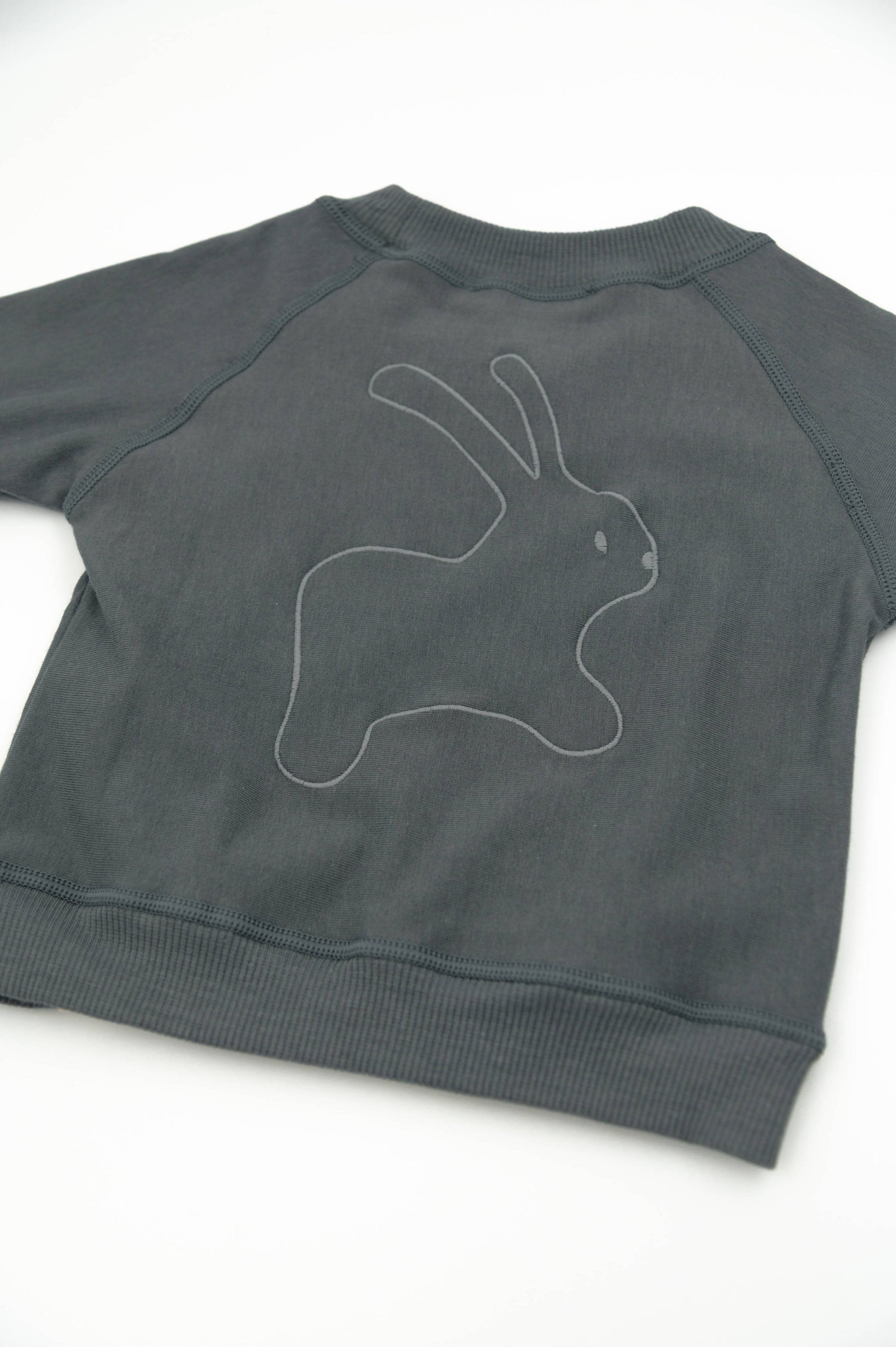 Maglia bimbo in moletone e lana merino con ricamo coniglio