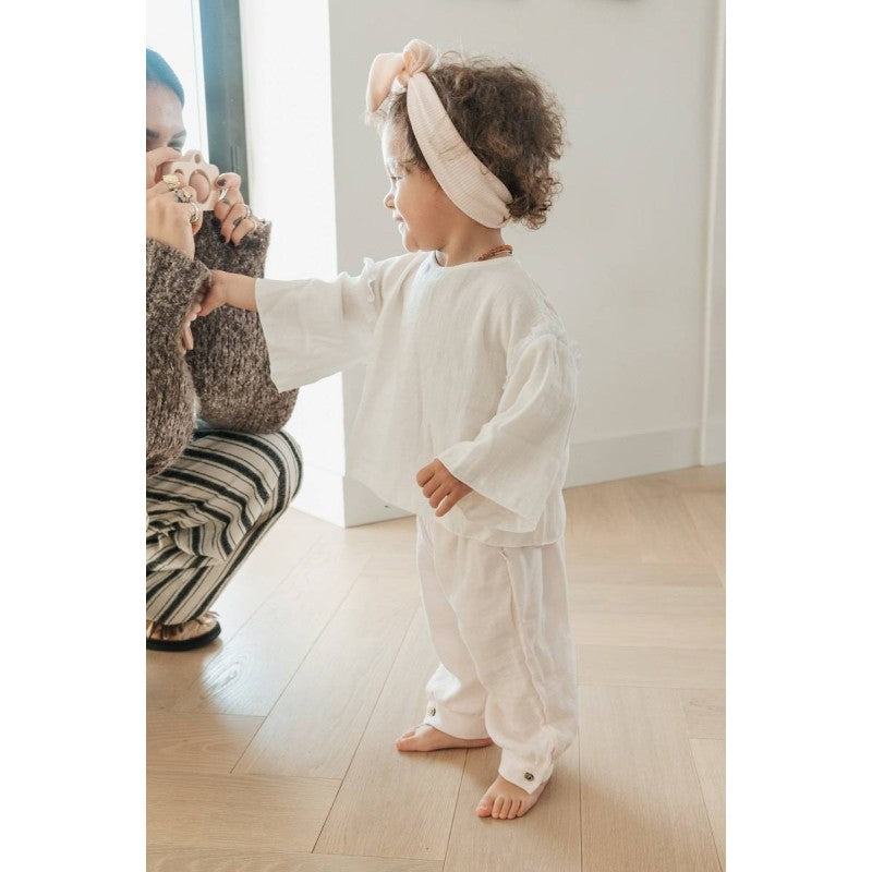 Il pantalone a palloncino bimba in fibra di bambù organico è un capo versatile, pratico e ricco di stile, un must have della collezione estiva.