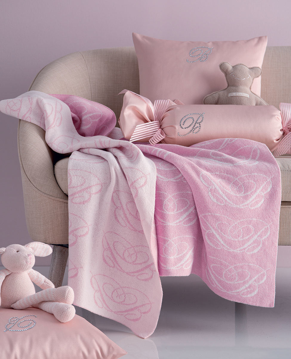 Copertina per culla e carrozzina con monogramma Blumarine in jacquard.