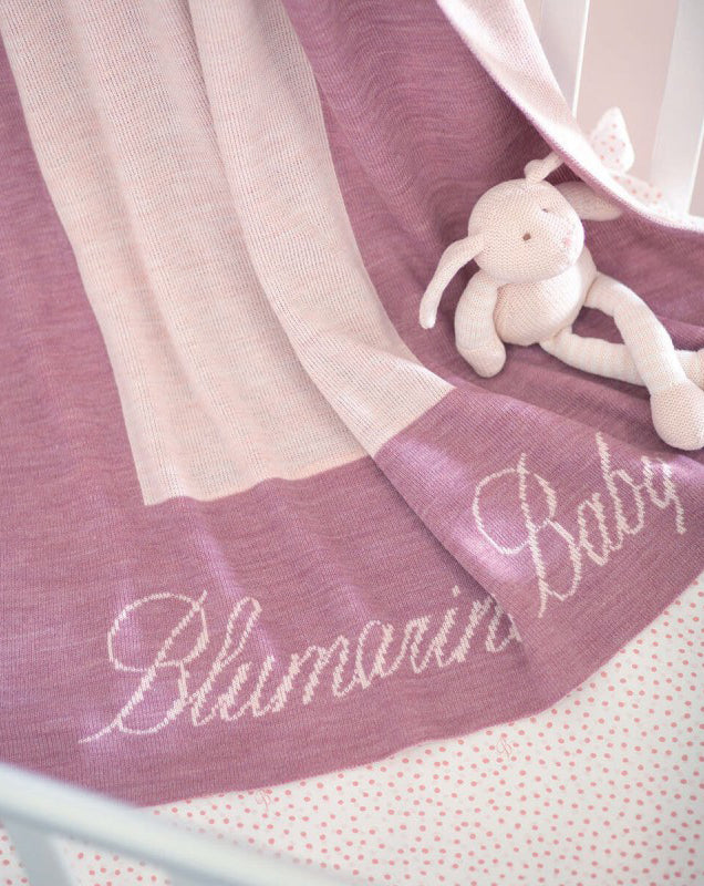 Copertina per culla e carrozzina con disegno in jacquard e logo Blumarine piazzato.