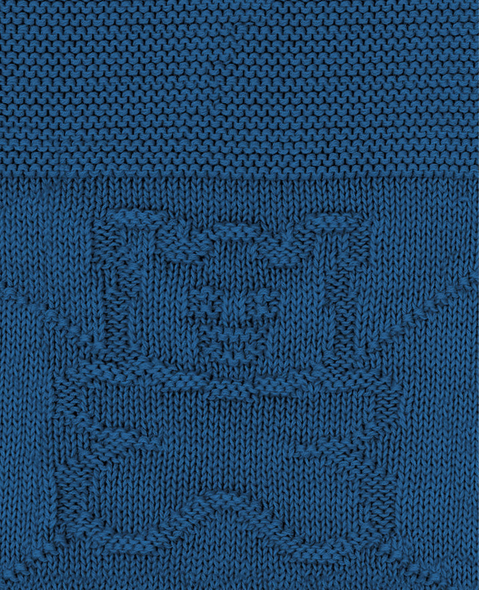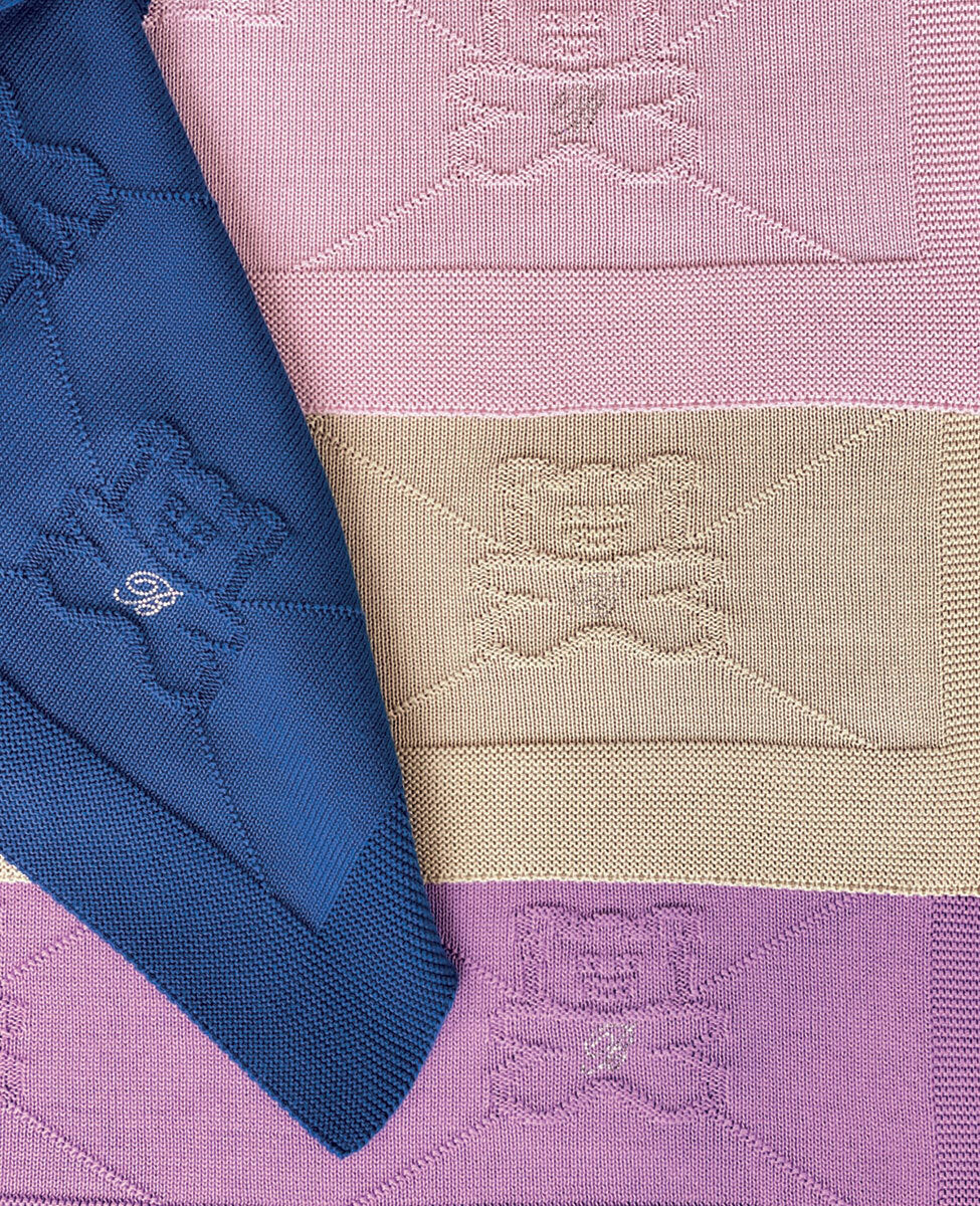 - Copertina per culla e carrozzina con disegno in jacquard e logo in cristalli.