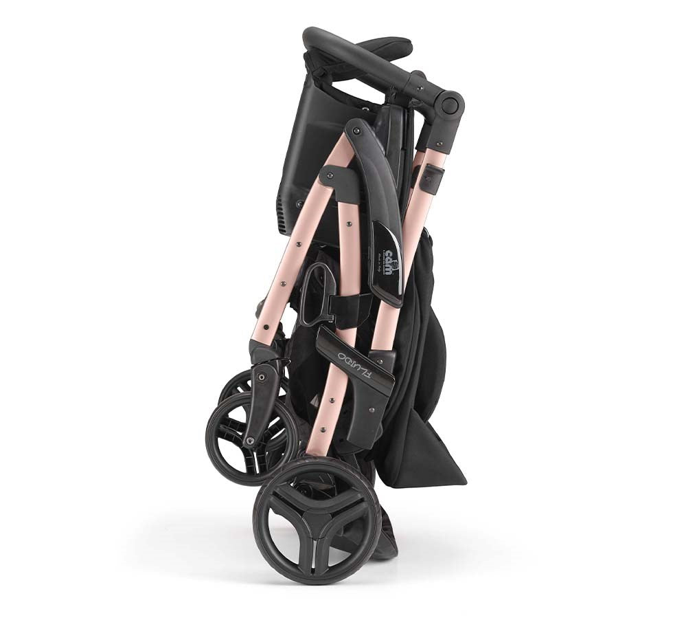 - Chiusura a libro compatta con la seduta in entrambe le posizioni di marcia, con maniglia da trasporto