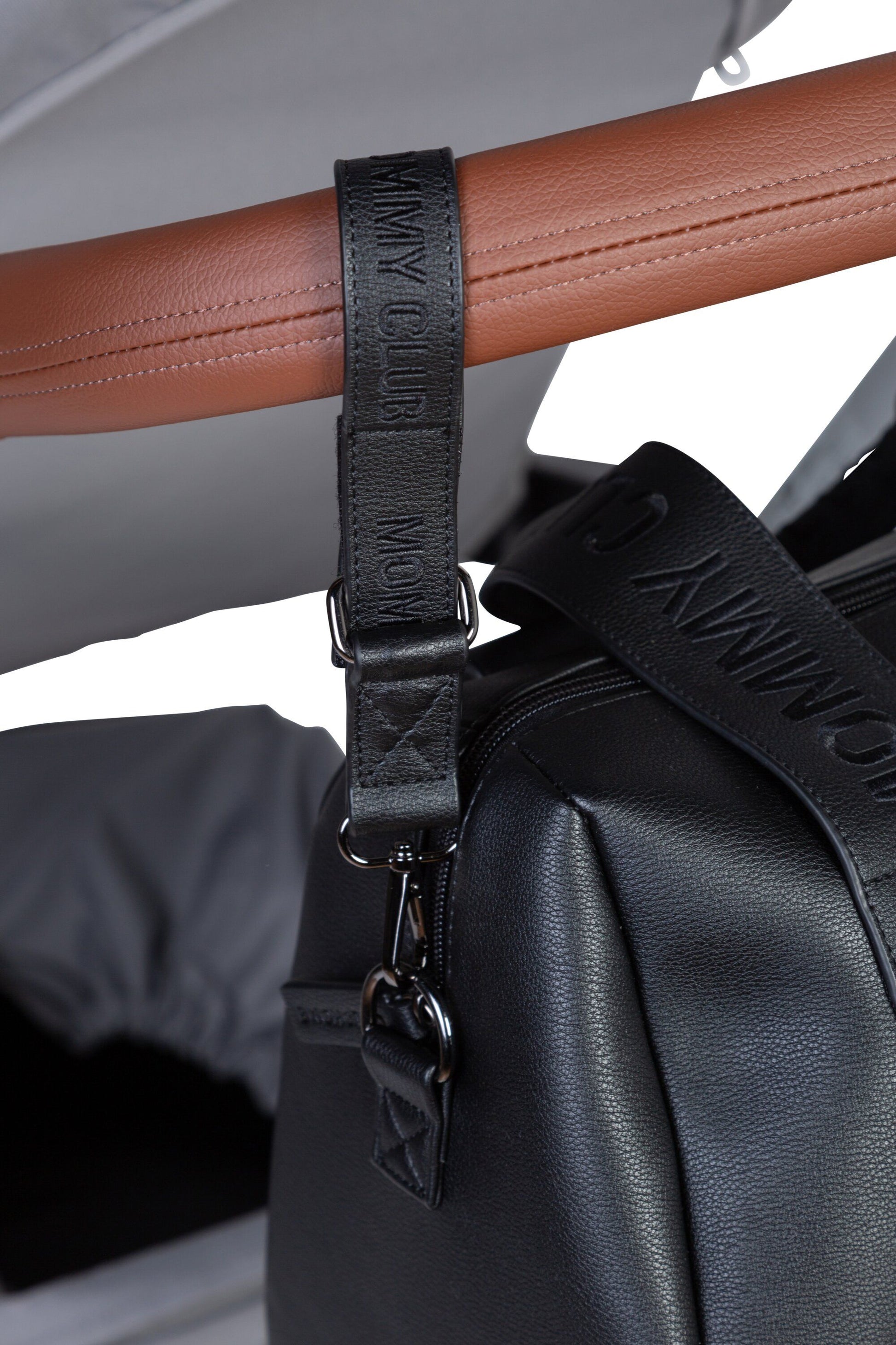 La borsa Mommy Club Signature in ecopelle nera è pensata per essere una borsa da tutti i giorni per le mamme, pratica per il lavoro, uscite con amici o viaggi brevi. Può essere agganciata al passeggino grazie ai ganci inclusi e include una tasca termica e un fasciatoio.