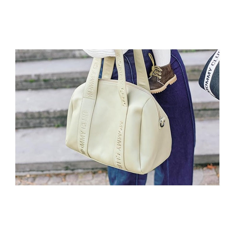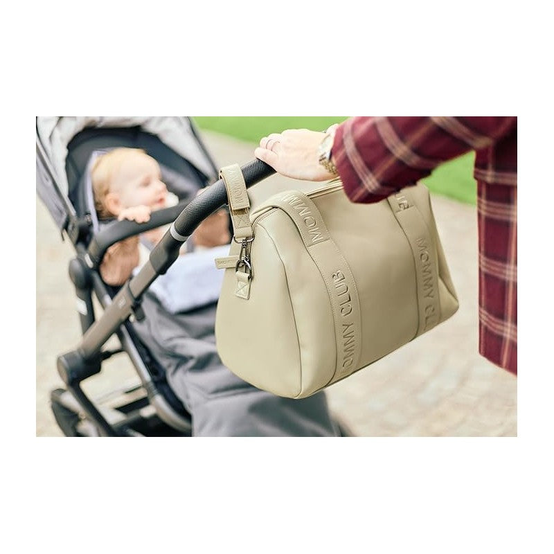 La borsa Mommy Club Signature in ecopelle nera è pensata per essere una borsa da tutti i giorni per le mamme, pratica per il lavoro, uscite con amici o viaggi brevi. Può essere agganciata al passeggino grazie ai ganci inclusi e include una tasca termica e un fasciatoio.