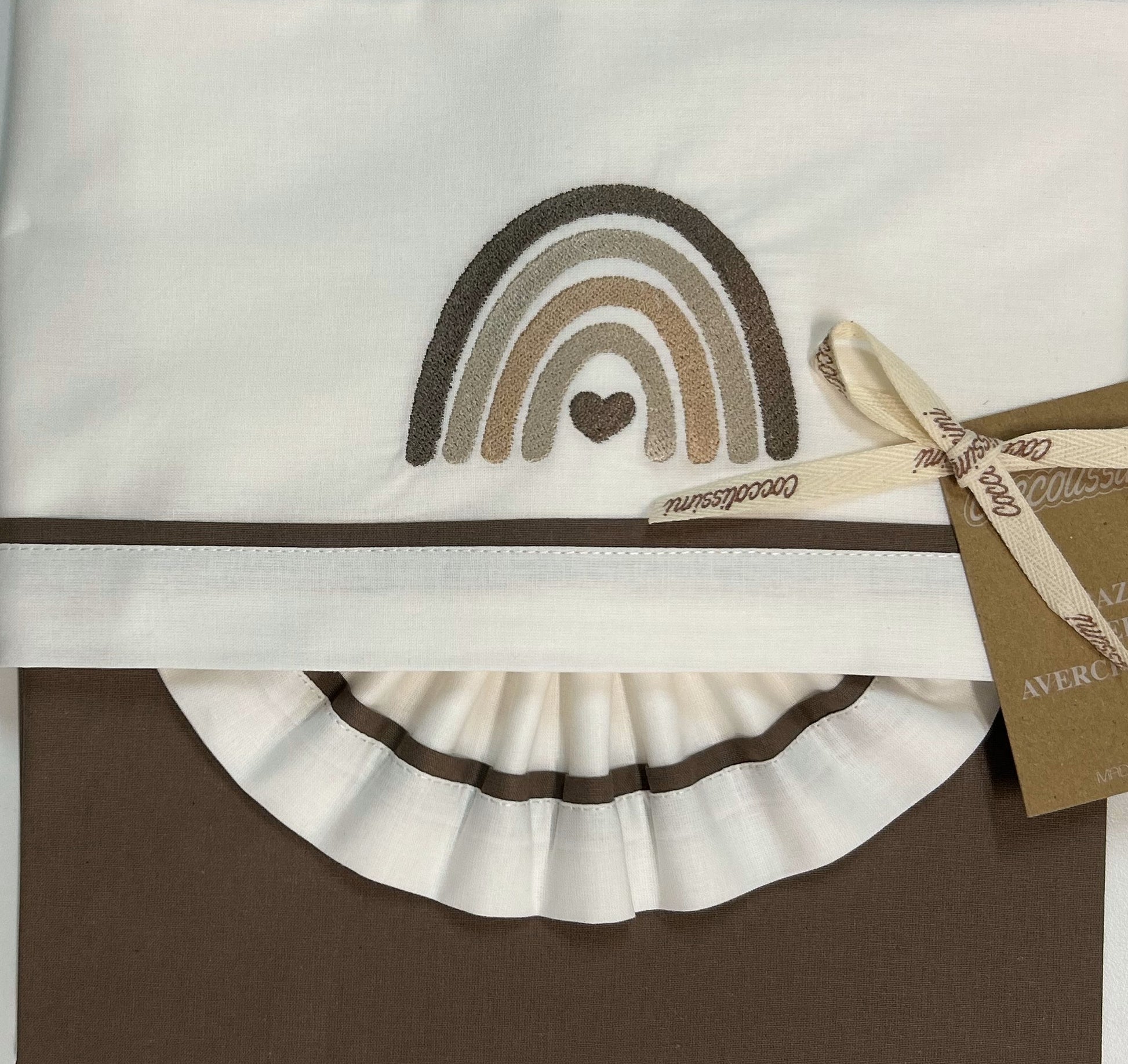 COCCOLISSIMI kit Lettino Coperta Filo + lenzuola coordinate - Rainbow Moka