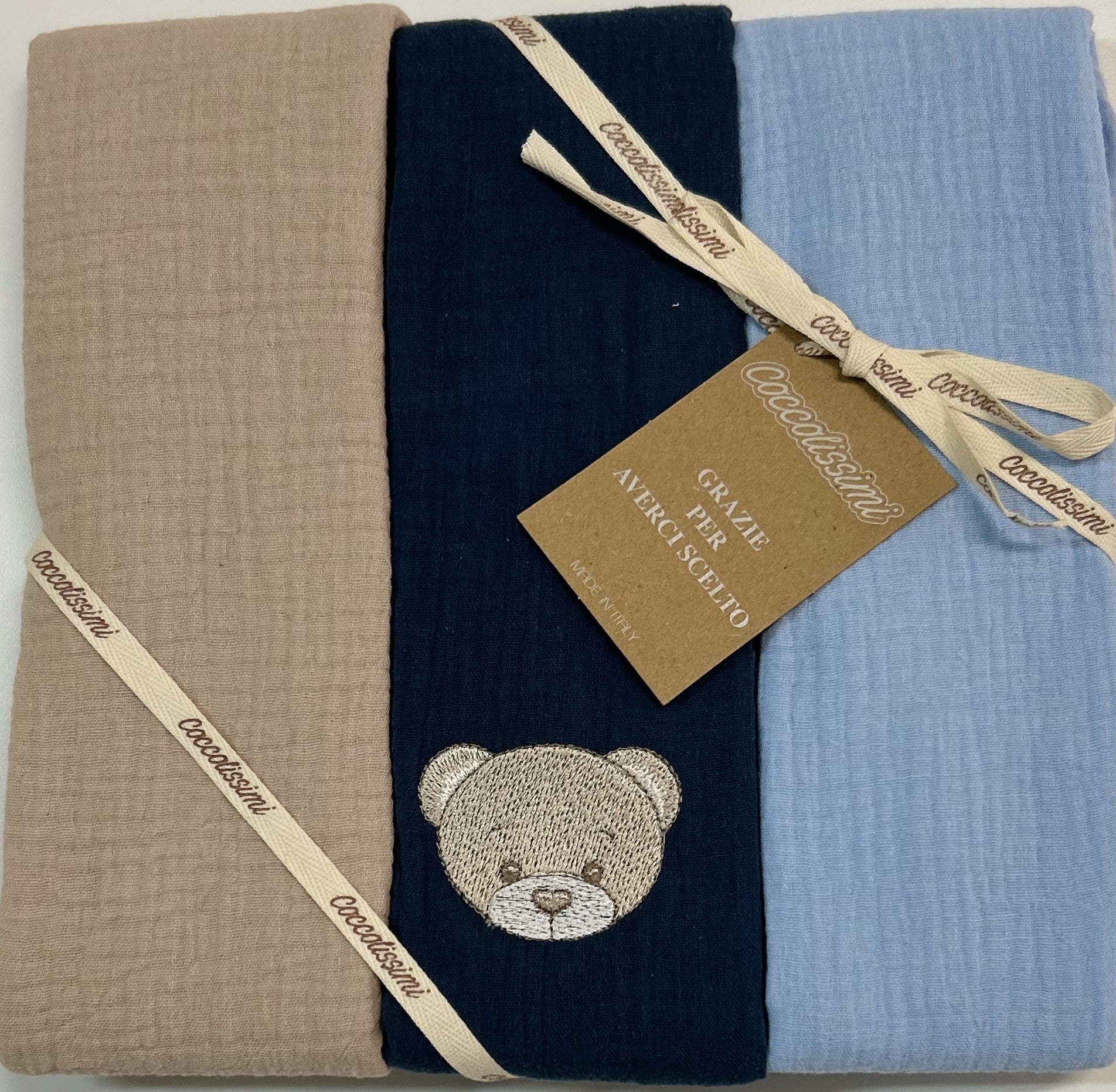 Coccolissimi - tris Mussola Muslin multiuso - serie TEDDY - colore AVIO