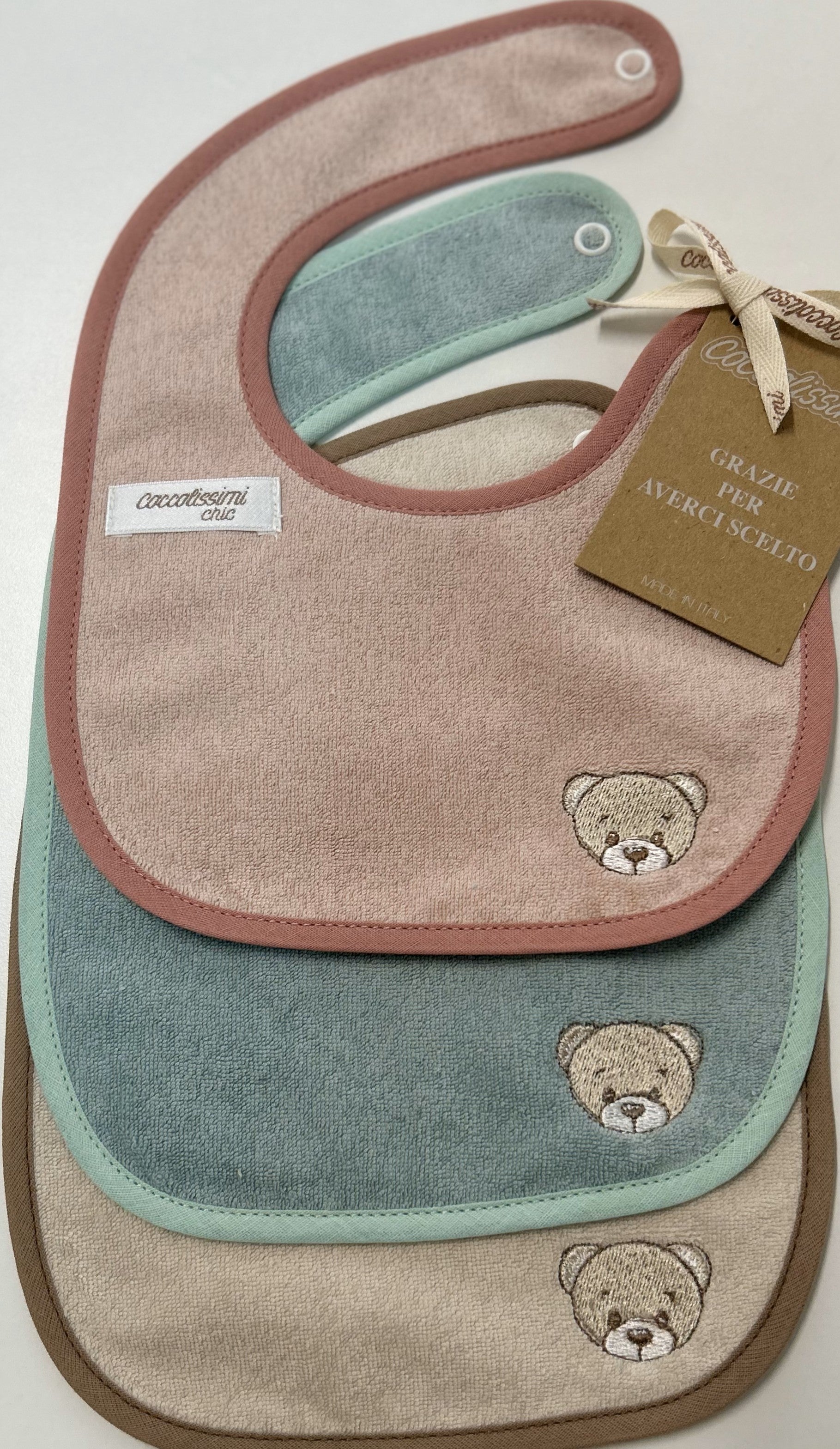 Coccolissimi - set tris bavaglini - serie TEDDY - colore OLD ROSE