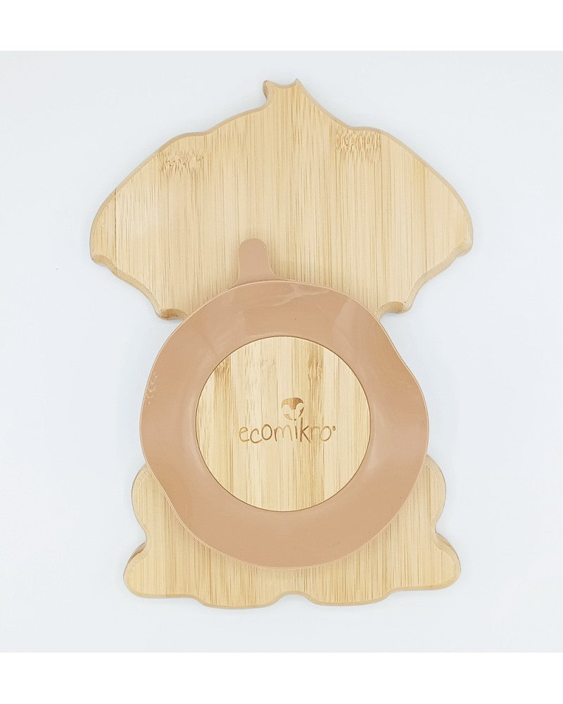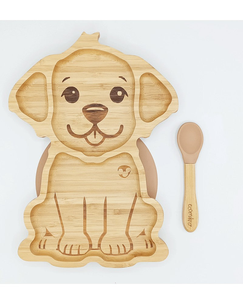 ECOMIKRO - Piatto con cucchiaio bambù CANE - nocciola