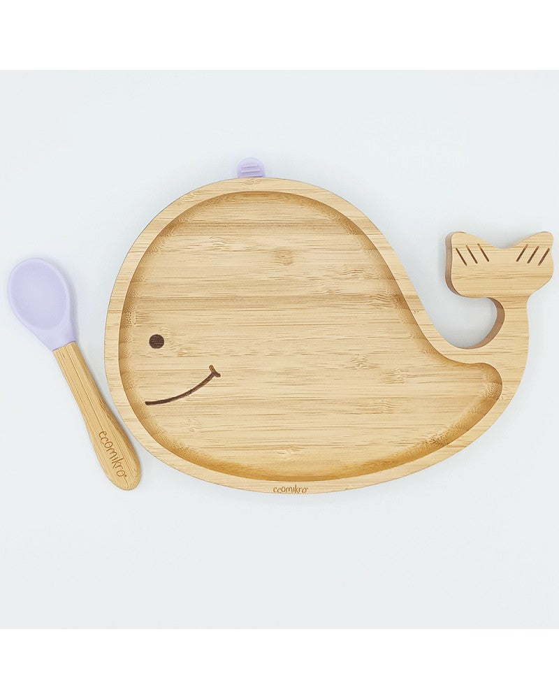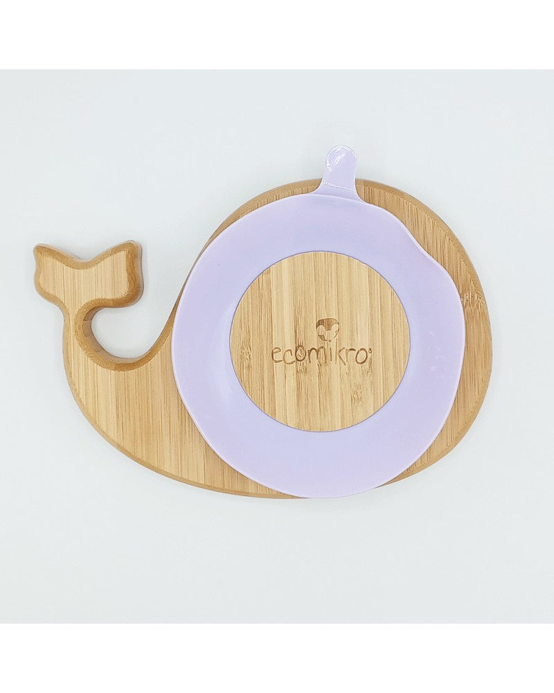 ECOMIKRO - Piatto con cucchiaio bambù BALENA - lilla