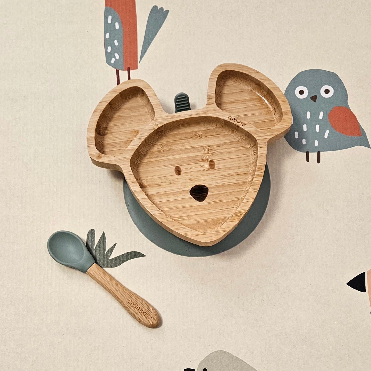 Il piatto topo Mikro in bambù di Ecomikro ha una ventosa rimovibile che garantisce l’aderenza al seggiolone o al tavolo.