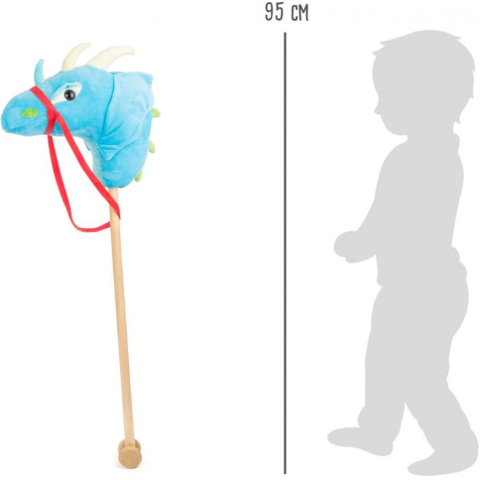 Un drago con asta? Ma certo, questo drago porterà moltissimo divertimento e movimento in cameretta. Durante la pausa si può accarezzare la testa di peluche.La robusta asta in legno ha all'estremità una ruota affinchè il drago possa scivolare meglio sul pavimento. I piccoli cavalcatori tengono le briglie in nylon del drago e lo guidano nella direzione giusta. Dove ci porterà la prossima cavalcata?