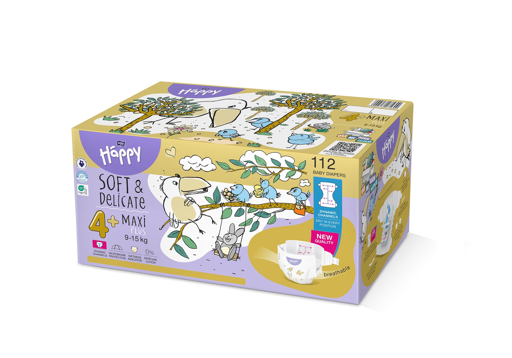 I pannolini Happy Maxi Plus Misura 4+ sono consigliati per neonati di peso compreso tra 9 e 15 kg. Realizzati con materiali di altissima qualità, si adattano perfettamente al corpo del bambino e forniscono una confortevole sensazione di asciutto. Creati pensando alle esigenze della pelle più sensibile, non contengono allergeni e riducono al minimo il rischio di dermatite da pannolino.