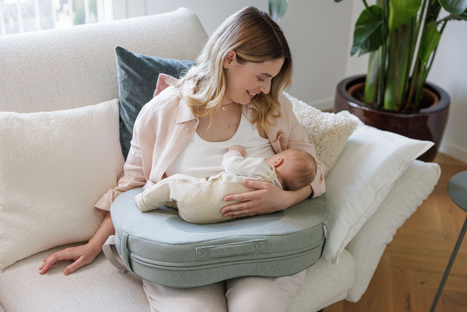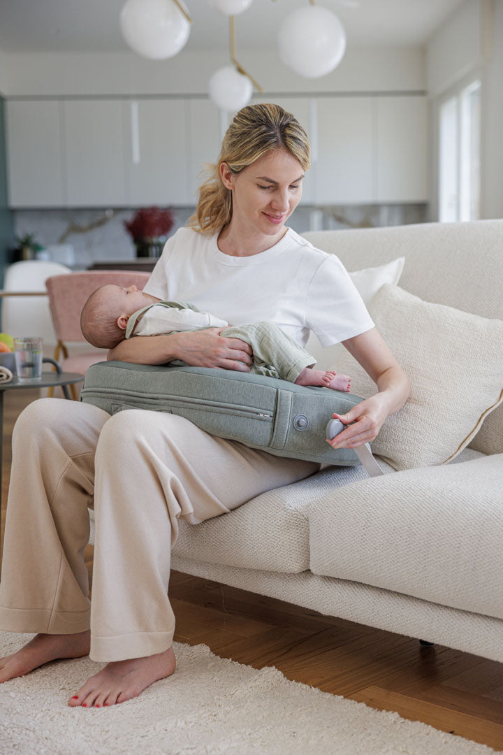 Il cuscino sostiene il neonato all’altezza ideale e consente alla mamma di avere una postura corretta alleviando le tensioni su schiena e spalle che rimangono in una posizione naturale e rilassata, prevenendo dolori lombari e cervicali. La forma ergonomica ed allargata del cuscino sostiene i gomiti della mamma e distribuisce uniformemente il peso del bambino, riducendo l’affaticamento di polsi, gomiti e avambracci, prevenendo dolori muscolari.