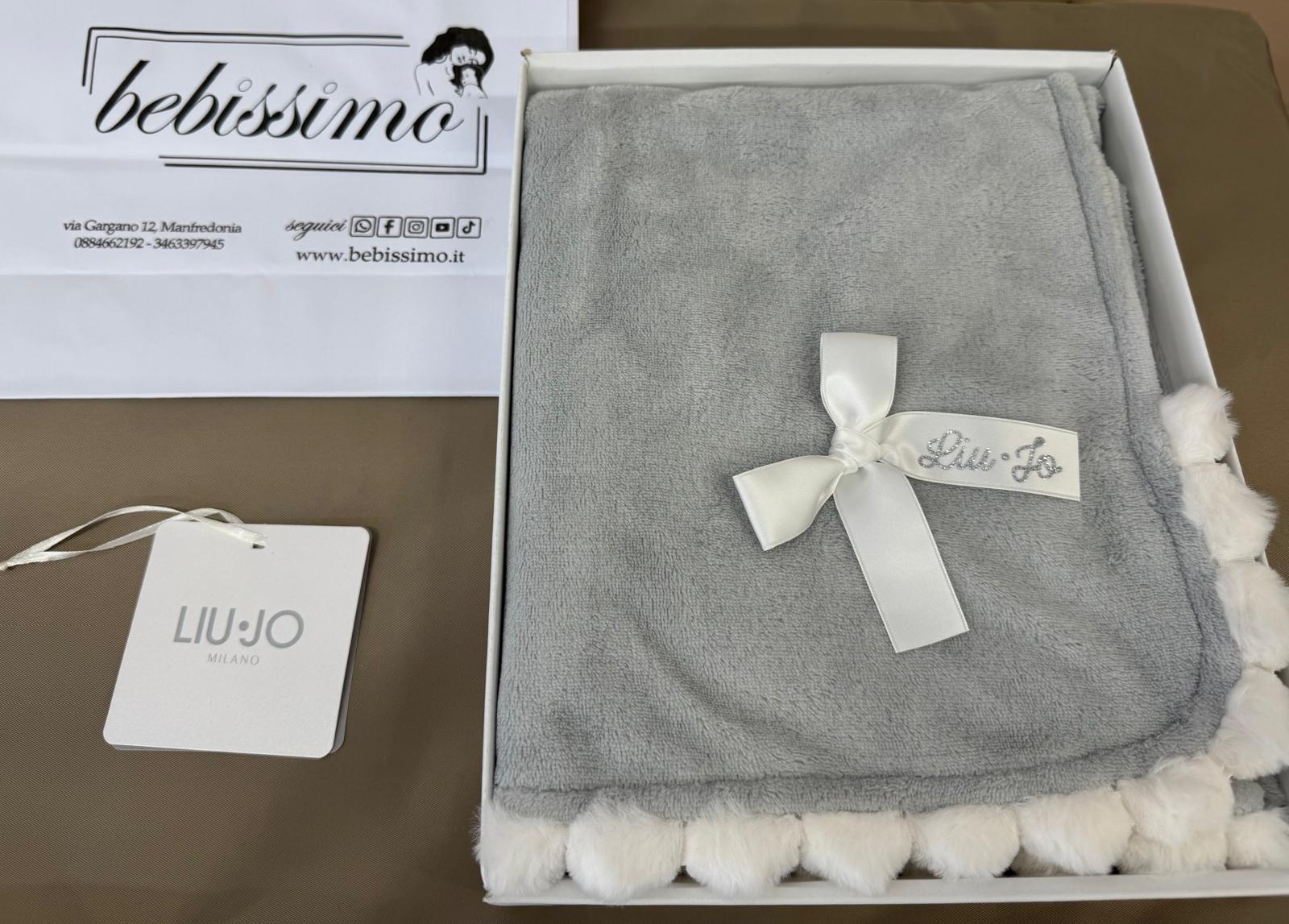 Aggiungi un tocco di lusso alla culla o alla carrozzina del tuo bambino con la Copertina Pon Pon Liu Jo. Realizzata in caldo e morbido pile, è perfetta per avvolgere il tuo bambino con amore e comfort. La sua elegante tonalità di colore, l'applicazione pon pon lungo una estremità e il fiocco logato glitter, la rendono un'aggiunta di classe a qualsiasi spazio. Dimensioni: 90x85 cm.
