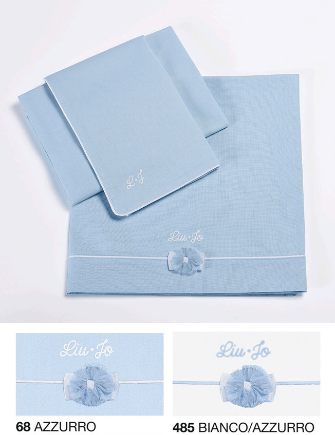 LIUJO Set Lenzuola 3pz Carrozzina FIOCCO - BL632C - azzurro scelta multipla