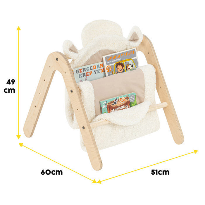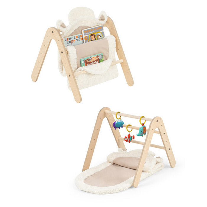 - Posizionando il tappetino sui pioli in legno, la palestrina si trasforma in una libreria Montessori frontale: i piccoli lettori potranno scegliere il loro libro preferito, sviluppando l'autonomia e la passione per la lettura
