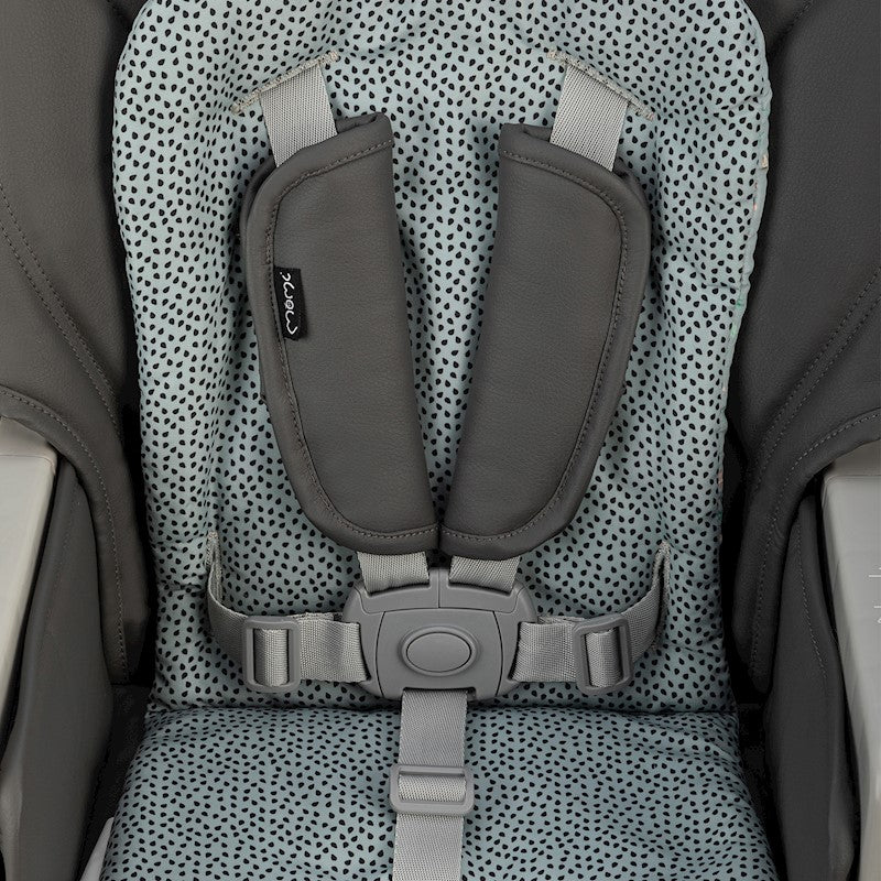 Per MoMi, la cosa più importante è la sicurezza del tuo piccolo, motivo per cui la seggiolone pappa MoMi GOJO è dotata di una cintura di sicurezza a 5 punti. Un ulteriore vantaggio della sedia è che si piega molto rapidamente, e un supporto speciale per il vassoio nelle gambe posteriori rende la sedia compatta quando è piegata.