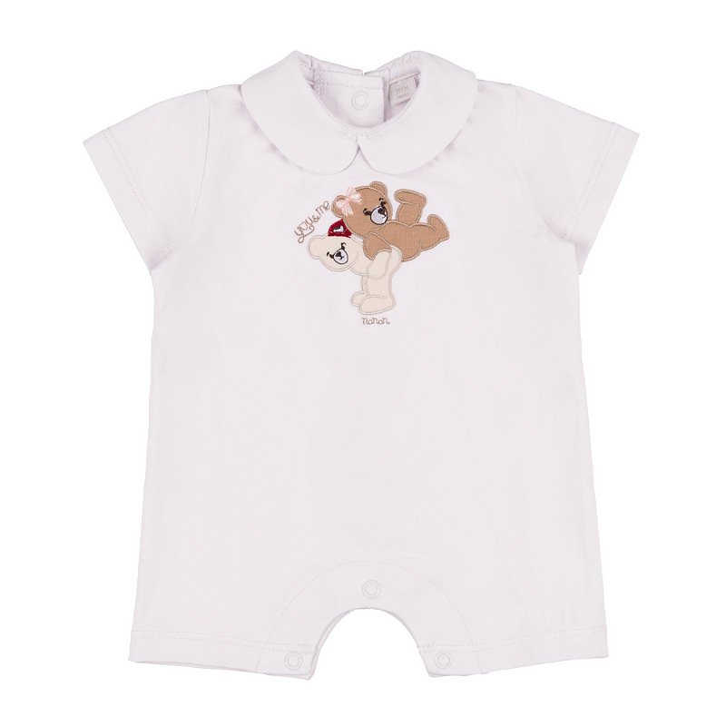 Delizioso pagliaccetto con apertura posteriore e inferiore, arricchito da due teneri orsetti e la scritta "You&Me".
