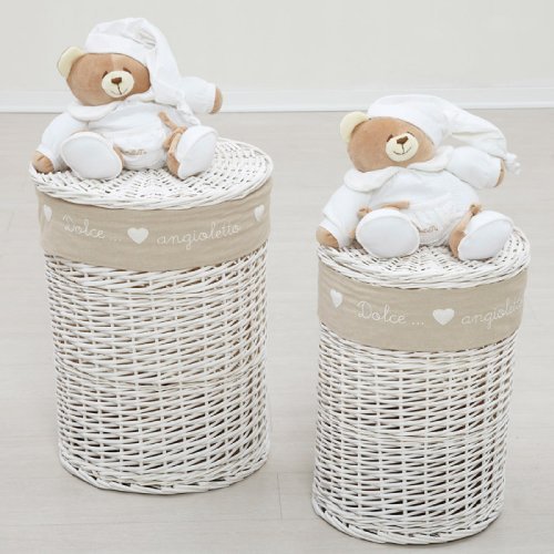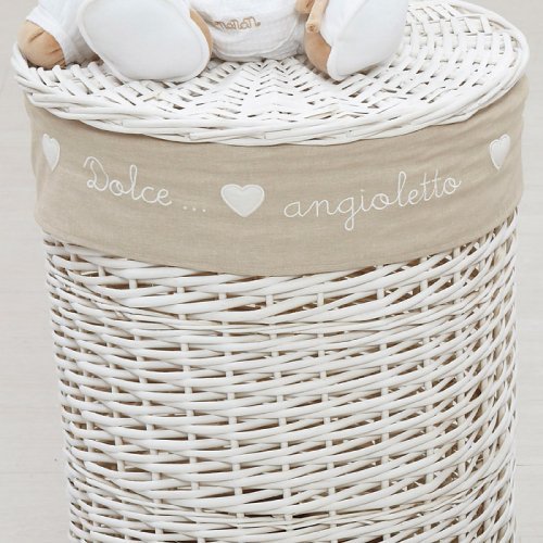 Il cesto Nanàn piccolo della collezione Tato è in vimini intrecciato a mano e laccato con vernice bianca a base di acqua, nel rispetto delle norme europee. E' un utilissimo contenitore, un cesto delle meraviglie in cui riporre tutti i giocattoli del tuo bebè. Con il tenero Tato, a tenere sempre compagnia al tuo bambino!