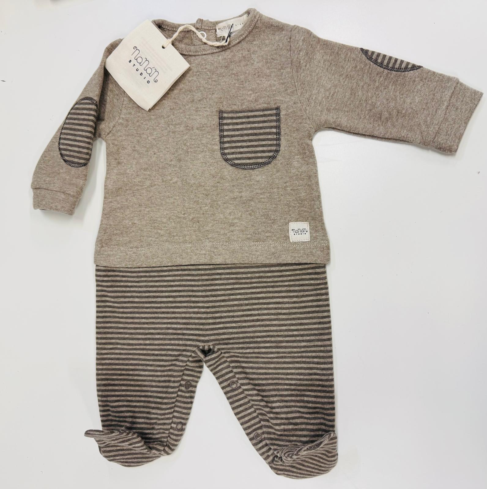 Nanan Studio - Tutina Rigata con toppe Tortora - SA031