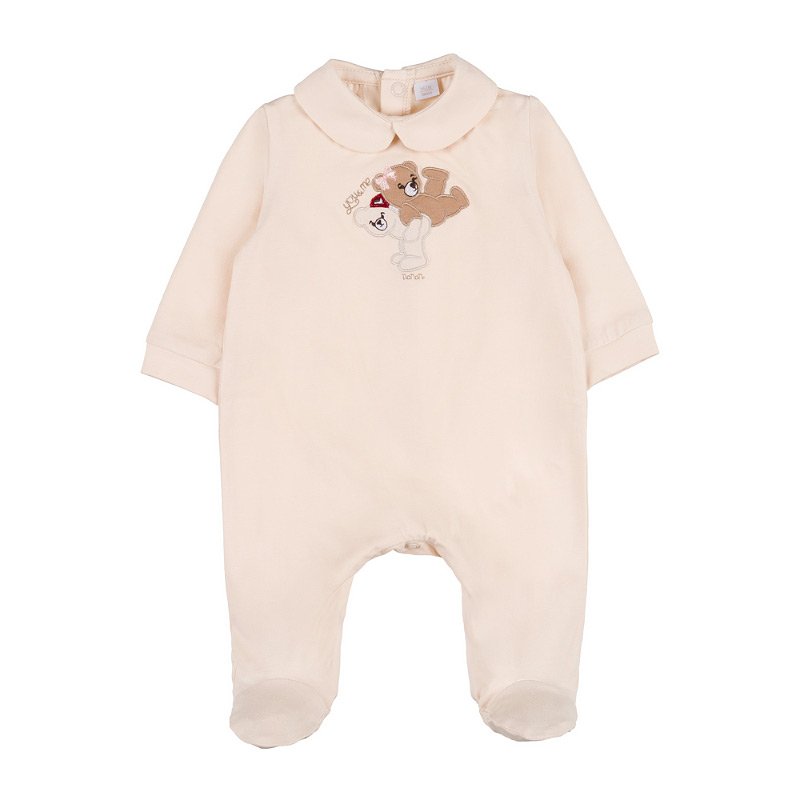 Deliziosa tutina con apertura posteriore, arricchita da due teneri orsetti e la scritta "You&Me".