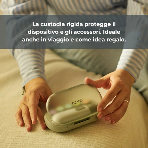 - Dotato di una custodia rigida per protegge il dispositivo e gli accessori, ideale per viaggi e per mantenere la routine di cura delle unghie ovunque.