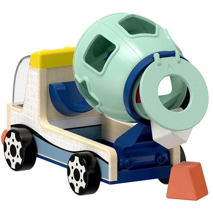 - Proprio come una vera betoniera, si può aprire il finestrino, ruotare il tamburo di 360 gradi e una volta che tutte le forme sono state ordinate correttamente il tamburo si ribalta all'indietro e il divertimento ricomincia da capo
